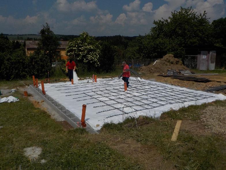 Dnes se betonovala základová deska. K vyhlazení betonu používali stavebníci vibrační lať. Celá akce trvala cca 2 hodiny a bylo hotovo. Pan Slavkovský a jeho kolegové nás na místě upozornili, že je nutné desku v takovém horku kropit studenou vodou zhruba 2x denně, aby nepopraskala. Více foto viz fotogalerie.