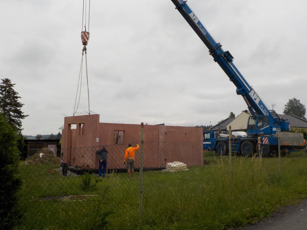 Stavba prvního patra probíhala velmi svižně, během jednoho dne stihli stavebníci postavit zdi, osadit schody, položit stropy a také je zabetonovat.