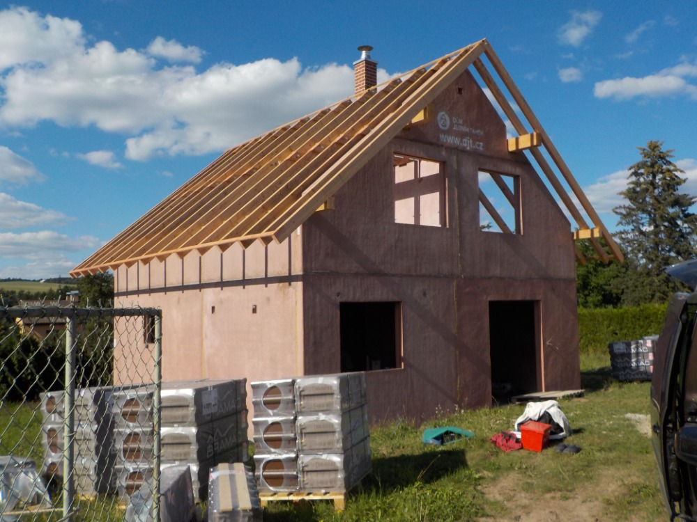 Od 25.6.-1.7. se pan Voříšek pustil do střechy. Střecha se velmi povedla, podle několika nezávislých hodnocení byla střecha provedena kvalitně a navíc je naddimenzovaná. Viz fotogalerie. Další týden tedy mohli nastoupit pokrývači.