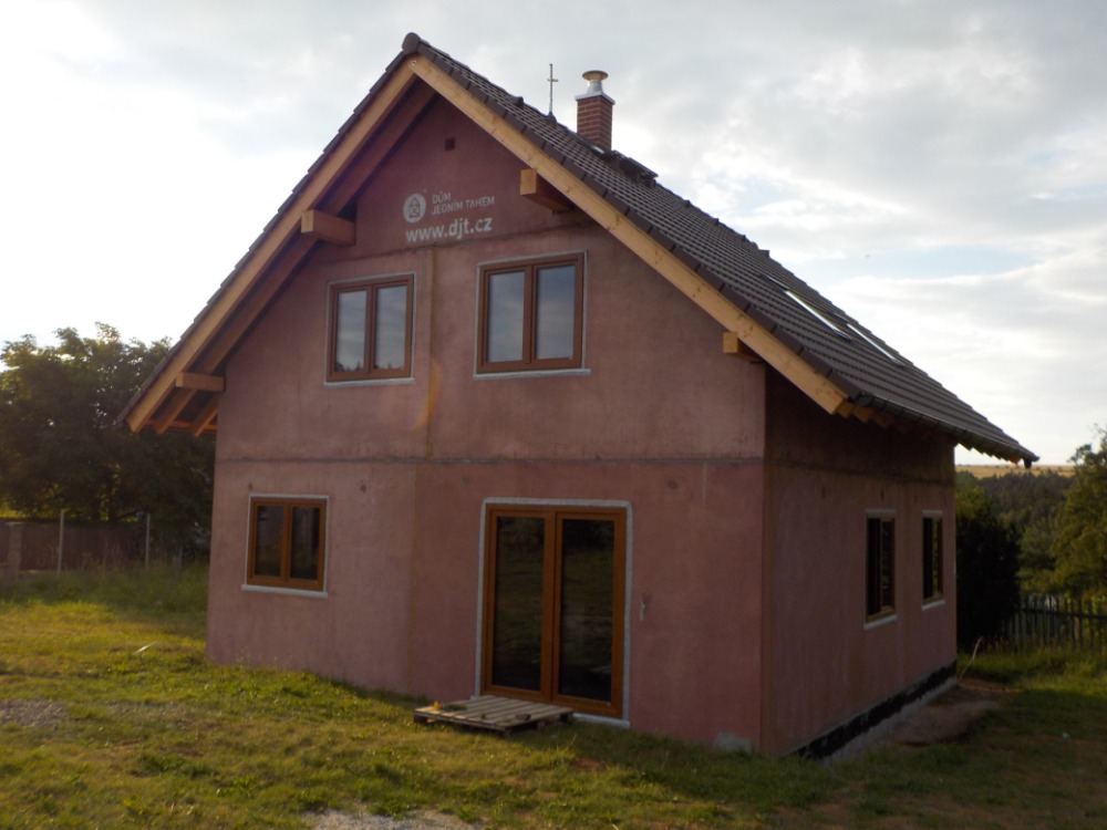 Minulý týden pokrývači dokončili střechu a okapy. Během dneška okenáři namontovali okna, vchodové i terasové dveře. Okna jsou na domě jen pár hodin a hned překvapila malého budníčka, který se po nárazu pár minut vzpamatovával na zemi, naštěstí se poté zase rozletěl. Dostali jsme klíče a tímto dnem je práce Domu jedním tahem u konce. Ještě nás čeká...
